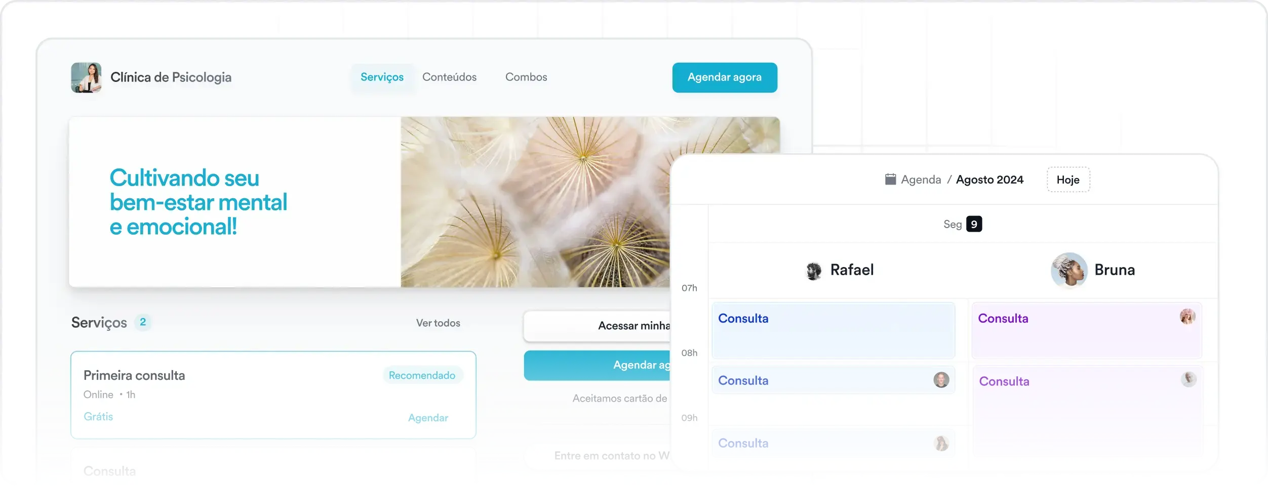 Agenda online, site exclusivo, lembretes automáticos por WhatsApp, gestão de clientes e atendimento online em um só sistema simples de usar